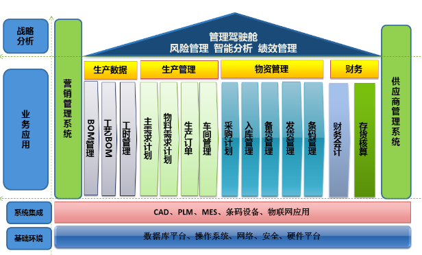 支持多期间分层次的滚动预测,预测订单、销售订单以及紧急插单均可确认为主生产需求,然后根据需求计算物料需求计划,采购件可以下达采购计划,委外件下达委外申请,制造件下达生产订单;生产订单系统完成材料领用和产品入库。期末成本管理完成生产制造成本的核算和结转工作。
